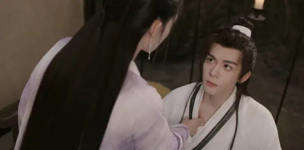 霍展白醒来便是关心师傅,关心沫儿的药,可自己的喉咙受损,怕是不能说话了,薛紫夜阴阳怪气说正好少说些话。薛紫夜无奈,说他终身残疾霍展白一点都不着急,可说他无法立即去取药便着急了。薛紫夜起身来到霍展白面前,叫他脱了衣服为他刮痧,霍展白有些把持不住,一把夺来表示自己来,可薛紫夜看他手法不熟,还是亲手为他刮痧。嗓子虽然恢复了,喉咙却还是很疼。这一次,霍展白是为了救秋水鹤才受的伤,他将秋水鹤视作生身父亲,自然是要全力以赴的。