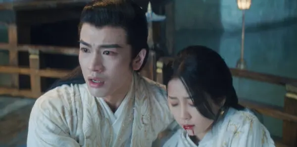 宫子羽不怒反喜,他称自己跟老天来了一场赌注,真正的解药被他放在了云为衫的汤药里,由此证明云为衫是喜欢他的,得知真相的云为衫震惊不已,她抱住宫子羽痛哭起来,心里的滋味难以名述,突然间,云为衫开始剧烈咳嗽,然后口吐鲜血晕了过去,宫子羽以为是月长老的解药出了问题,他挣扎着把云为衫抱回了房间。