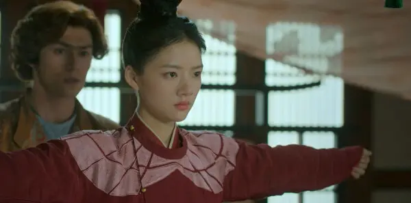阿里巴巴偷偷摸进上官府中,找到上官檎房间的后窗,将外面的窗栓拔下,上官檎也正在想办法逃出房间,用发簪拨动窗户后,从房间内往外撞,整好撞到窗外的阿里巴巴头上,两人本想一起离开,忽然听到上官琏说话的声音,便让阿里巴巴藏在房间桌子后面。